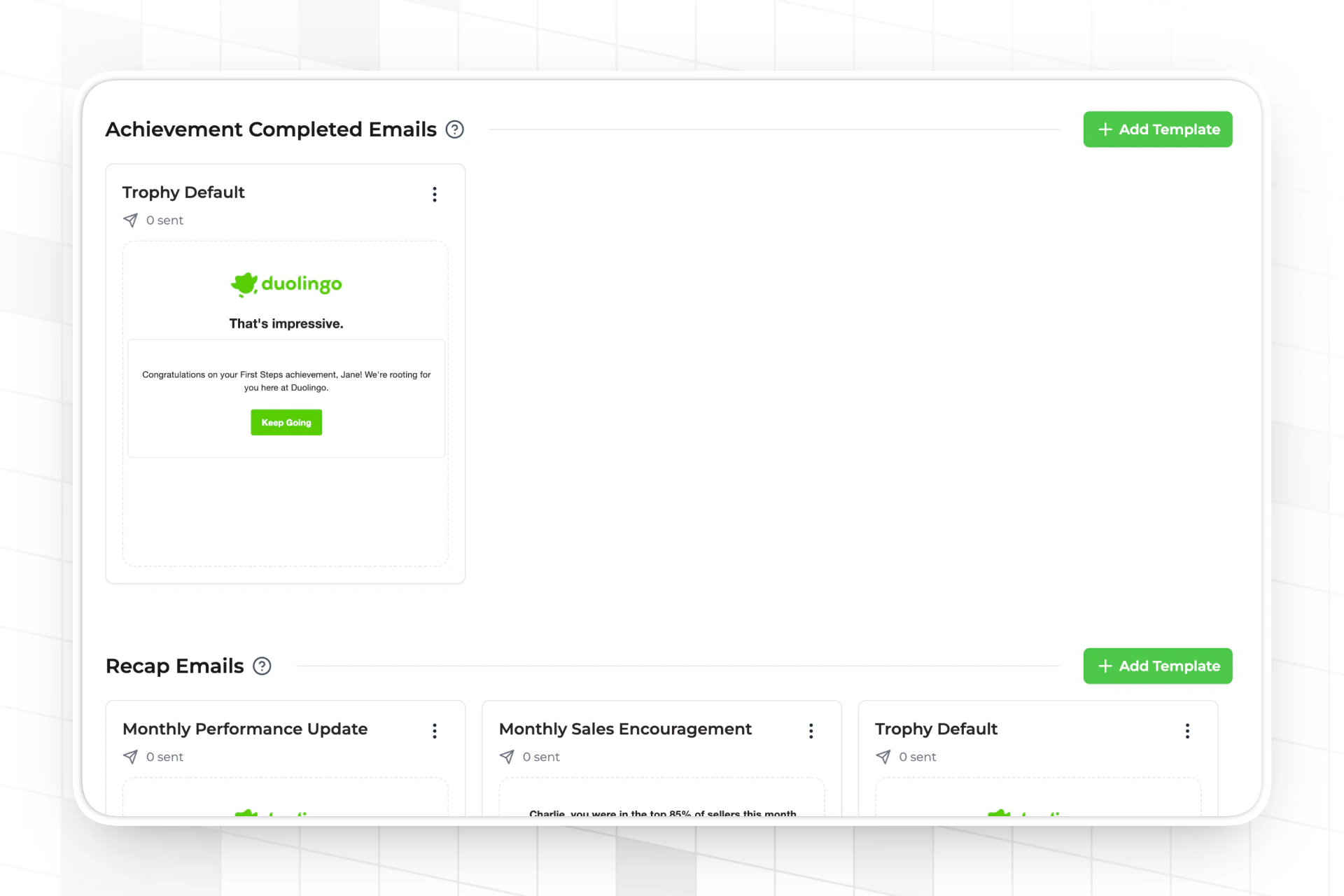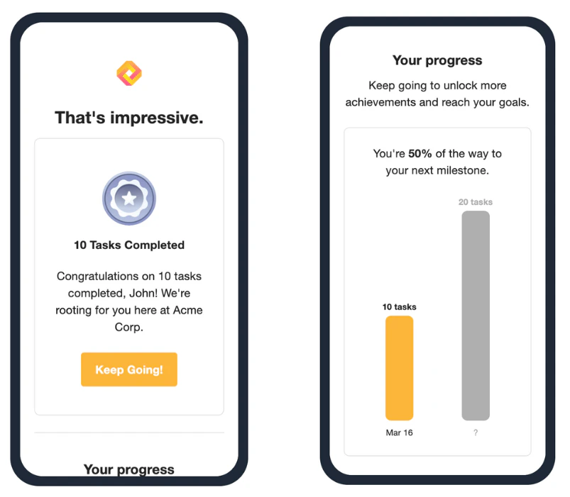 Achievement emails congratulate users when they complete an achievement you’ve configured in Trophy. These emails send between 5-9PM on the day the achievement is completed, or the next day at 5PM if it is past 9PM when the user completes the achievement.