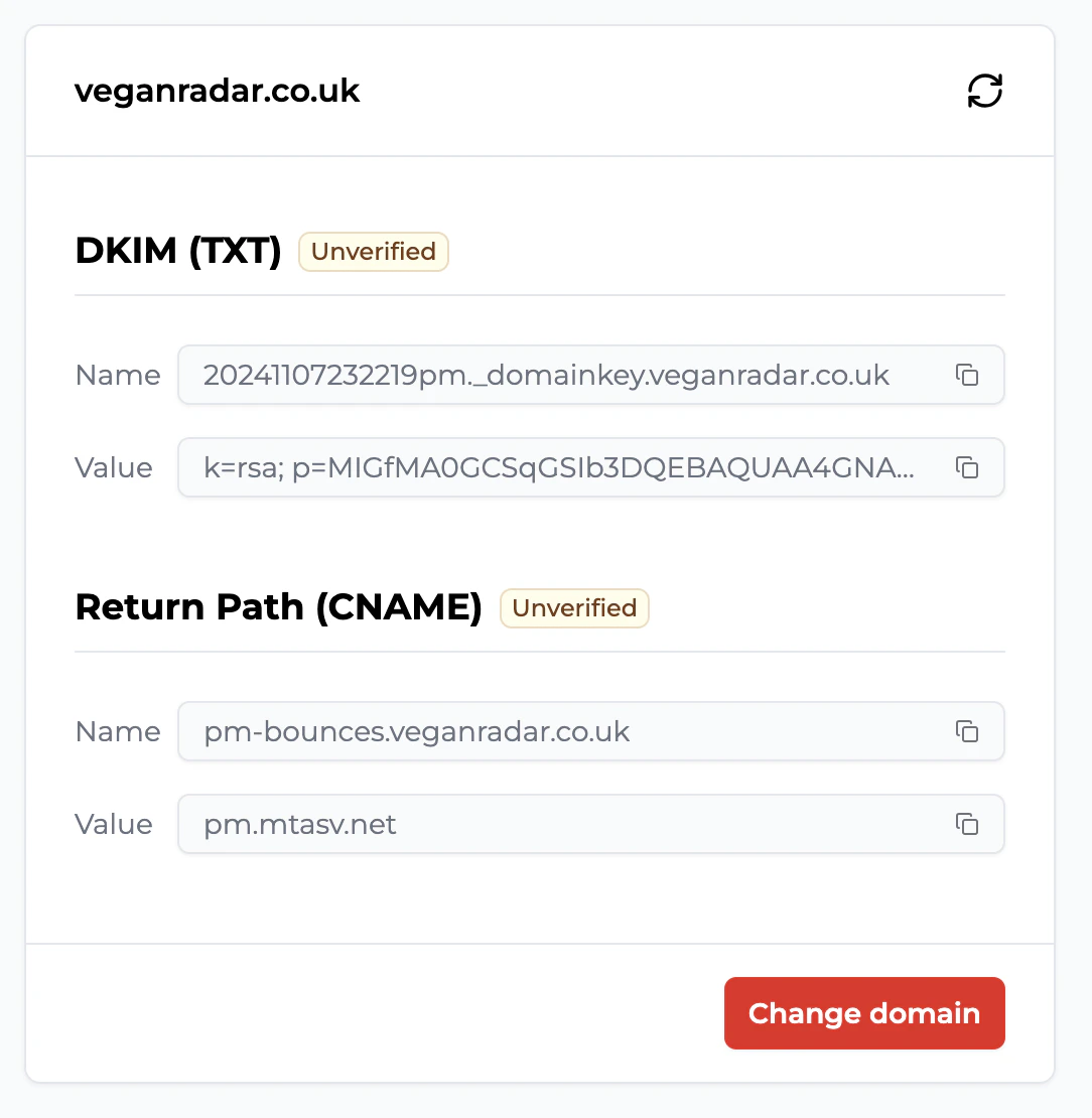 Once you’ve entered your email domain, Trophy will provide you with details for two new DNS records that you’ll need to add to your DNS provider.