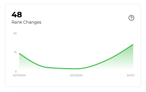 This chart shows the total number of rank changes in a particular leaderboard over time. This is useful to understand how competitive users are across the board.